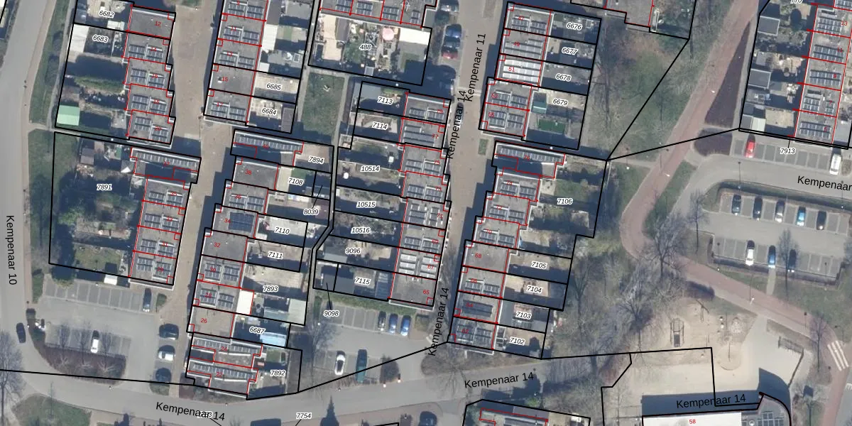 Gebruik de zoekbalk of klik op een perceel voor informatie over de adressen binnen dit perceel.