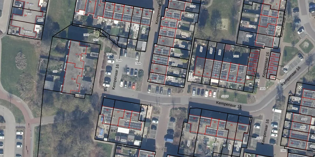 Gebruik de zoekbalk of klik op een perceel voor informatie over de adressen binnen dit perceel.