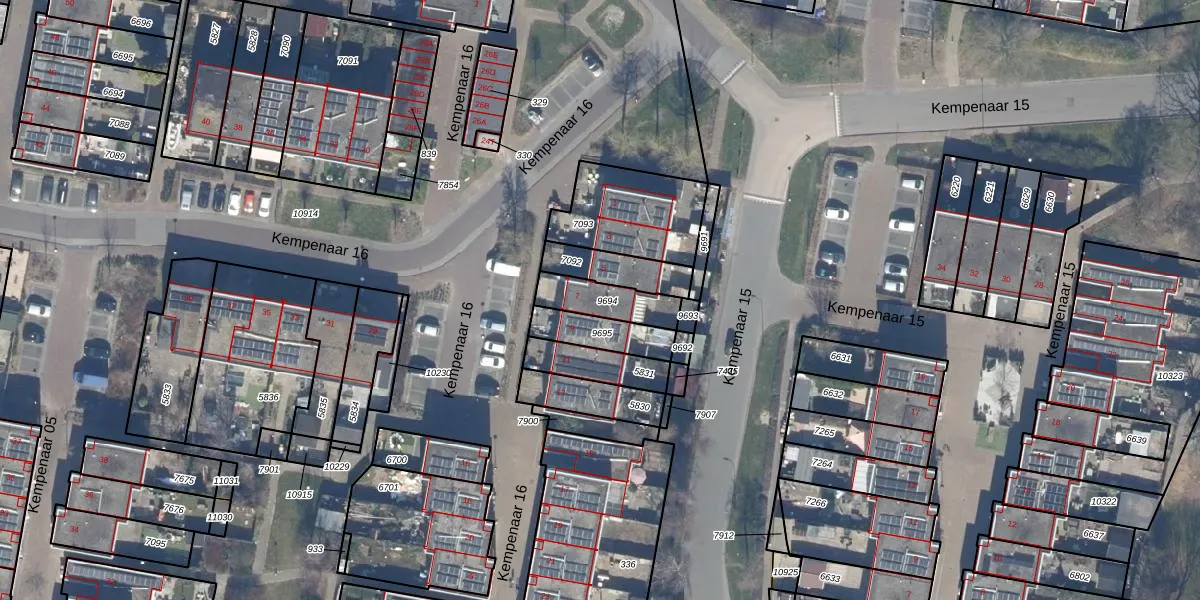 Gebruik de zoekbalk of klik op een perceel voor informatie over de adressen binnen dit perceel.