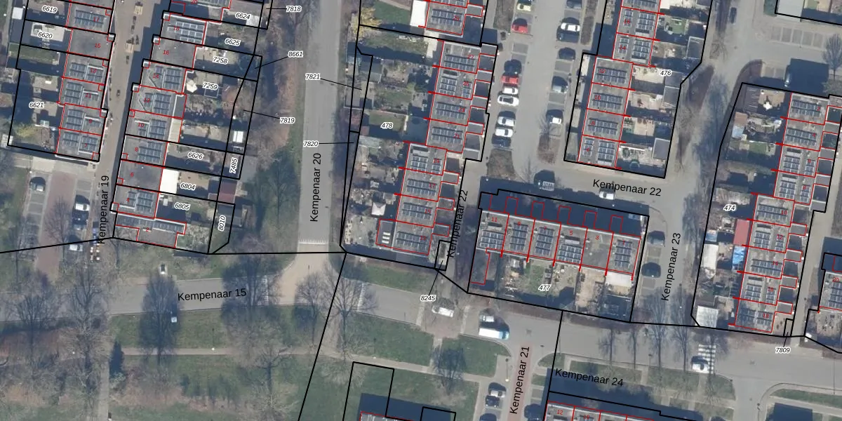 Het perceel waarop Kempenaar 22 15 staat heeft een oppervlakte van 1490 m². Dit is een zeer groot perceel. De perceeloppervlakte wordt geregistreerd door het Kadaster. Gedetailleerde informatie over de maten van dit perceel kunt u vinden in het rapport Kadastrale kaart met maatvoering van Kempenaar 22 15.