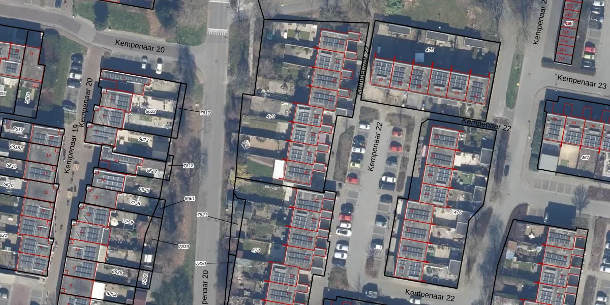 Het perceel waarop Kempenaar 22 31 staat heeft een oppervlakte van 1767 m². Dit is een zeer groot perceel. De perceeloppervlakte wordt geregistreerd door het Kadaster. Gedetailleerde informatie over de maten van dit perceel kunt u vinden in het rapport Kadastrale kaart met maatvoering van Kempenaar 22 31.