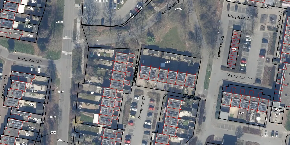 Het perceel waarop Kempenaar 22 32 staat heeft een oppervlakte van 1097 m². Dit is een zeer groot perceel. De perceeloppervlakte wordt geregistreerd door het Kadaster. Gedetailleerde informatie over de maten van dit perceel kunt u vinden in het rapport Kadastrale kaart met maatvoering van Kempenaar 22 32.