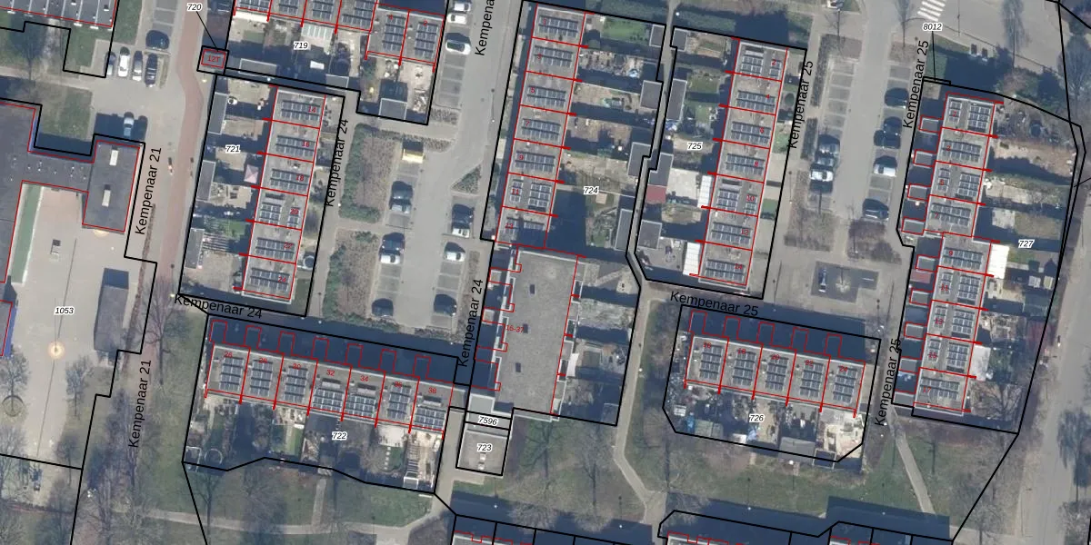 Het perceel waarop Kempenaar 24 23 staat heeft een oppervlakte van 2048 m². Dit is een zeer groot perceel. De perceeloppervlakte wordt geregistreerd door het Kadaster. Gedetailleerde informatie over de maten van dit perceel kunt u vinden in het rapport Kadastrale kaart met maatvoering van Kempenaar 24 23.