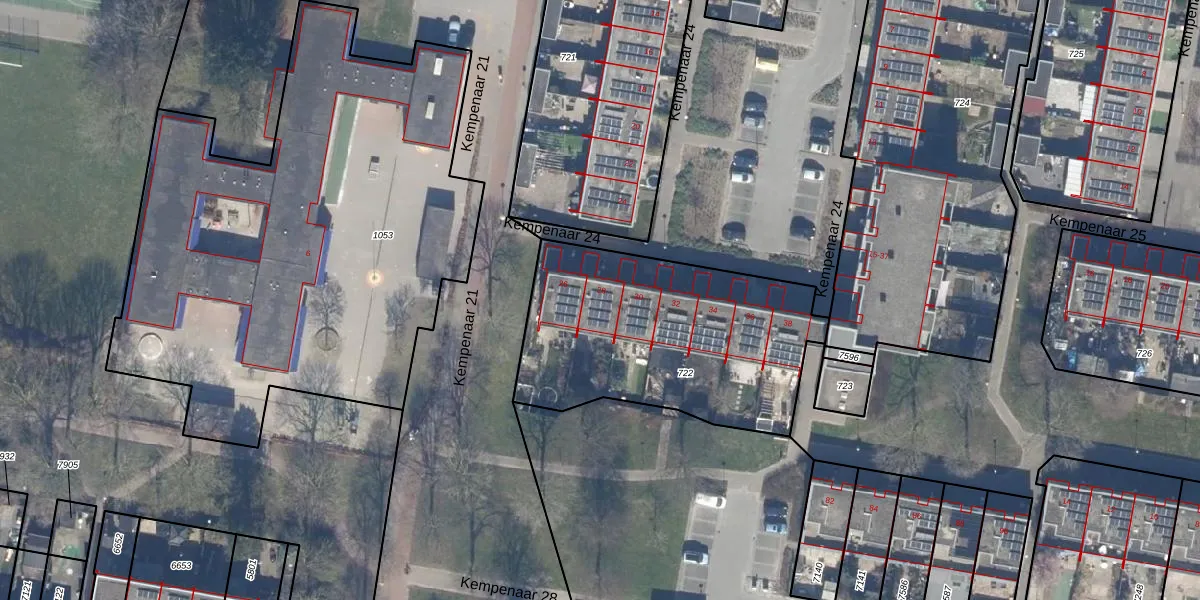 Het perceel waarop Kempenaar 24 28 staat heeft een oppervlakte van 1197 m². Dit is een zeer groot perceel. De perceeloppervlakte wordt geregistreerd door het Kadaster. Gedetailleerde informatie over de maten van dit perceel kunt u vinden in het rapport Kadastrale kaart met maatvoering van Kempenaar 24 28.