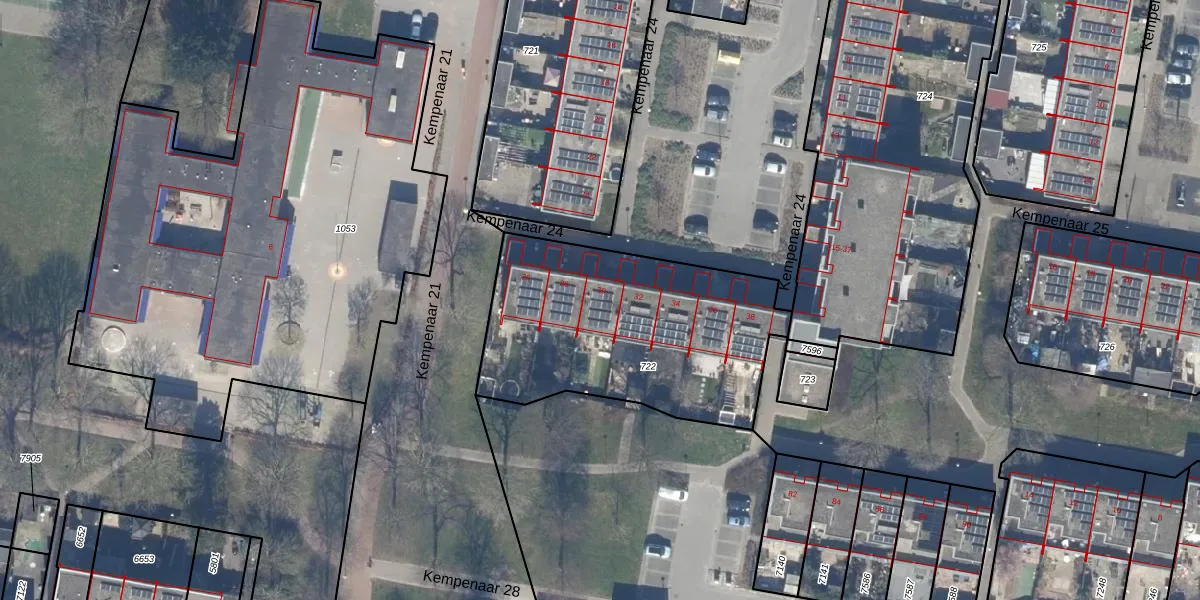 Het perceel waarop Kempenaar 24 30 staat heeft een oppervlakte van 1197 m². Dit is een zeer groot perceel. De perceeloppervlakte wordt geregistreerd door het Kadaster. Gedetailleerde informatie over de maten van dit perceel kunt u vinden in het rapport Kadastrale kaart met maatvoering van Kempenaar 24 30.