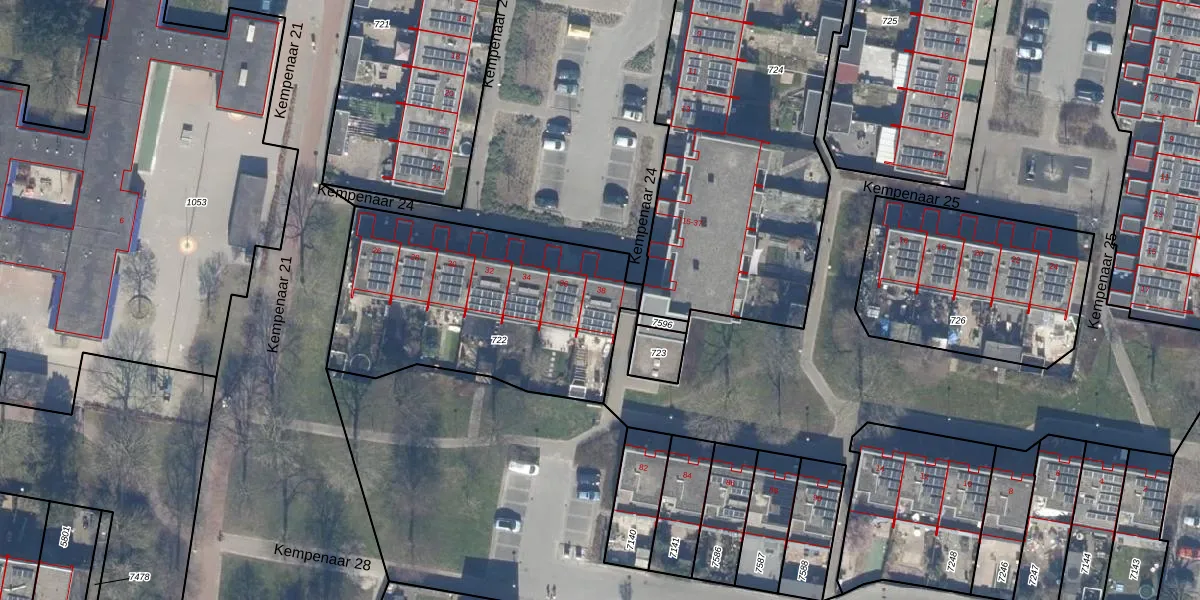 Het perceel waarop Kempenaar 24 38 staat heeft een oppervlakte van 1197 m². Dit is een zeer groot perceel. De perceeloppervlakte wordt geregistreerd door het Kadaster. Gedetailleerde informatie over de maten van dit perceel kunt u vinden in het rapport Kadastrale kaart met maatvoering van Kempenaar 24 38.
