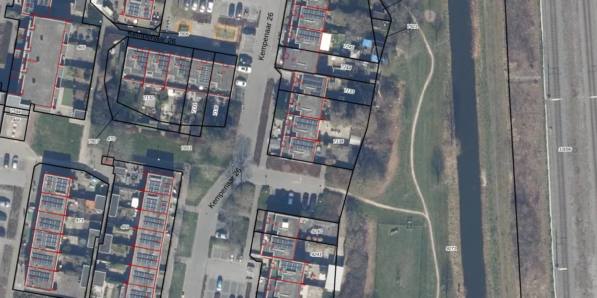 Het perceel waarop Kempenaar 26 24 staat heeft een oppervlakte van 681 m². Dit is een groot perceel. De perceeloppervlakte wordt geregistreerd door het Kadaster. Gedetailleerde informatie over de maten van dit perceel kunt u vinden in het rapport Kadastrale kaart met maatvoering van Kempenaar 26 24.