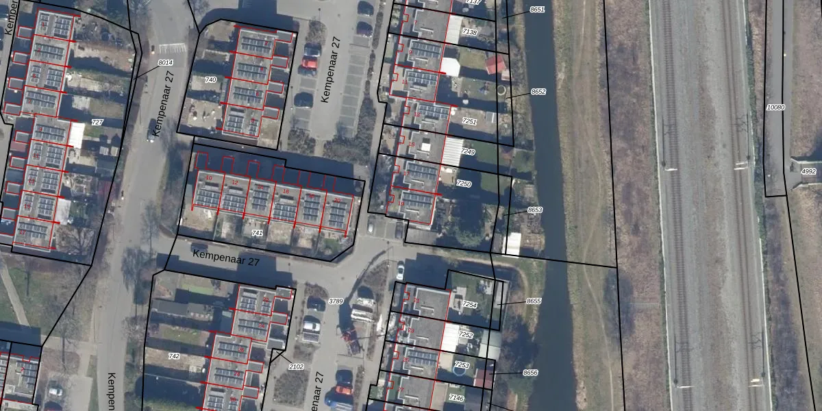 Het perceel waarop Kempenaar 27 19 staat heeft een oppervlakte van 563 m². Dit is een groot perceel. De perceeloppervlakte wordt geregistreerd door het Kadaster. Gedetailleerde informatie over de maten van dit perceel kunt u vinden in het rapport Kadastrale kaart met maatvoering van Kempenaar 27 19.