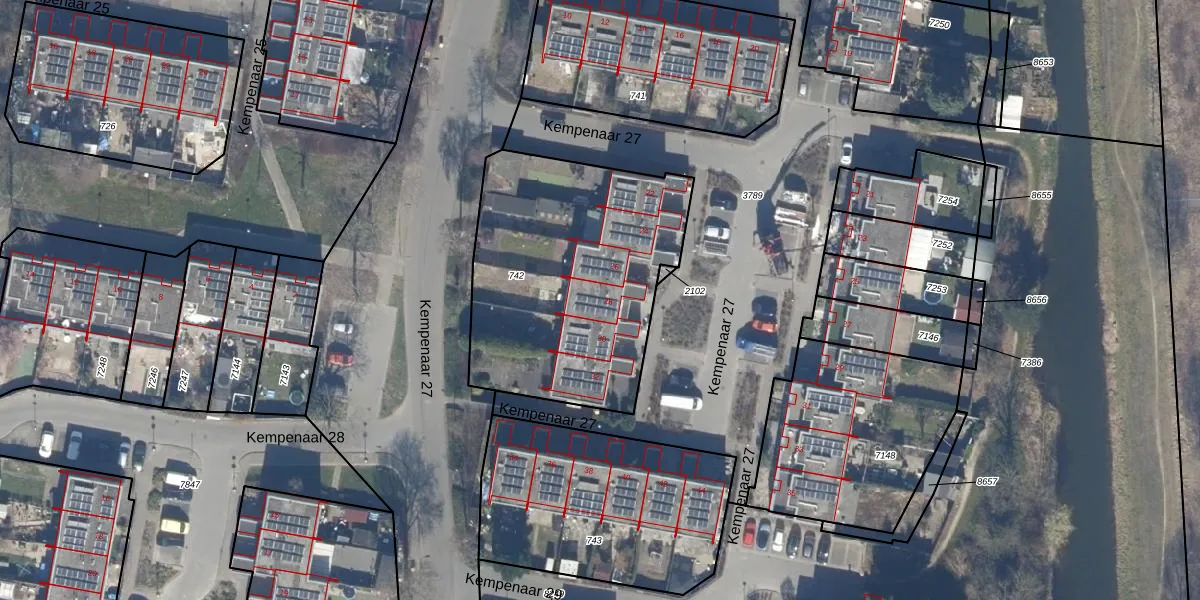 Het perceel waarop Kempenaar 27 28 staat heeft een oppervlakte van 1252 m². Dit is een zeer groot perceel. De perceeloppervlakte wordt geregistreerd door het Kadaster. Gedetailleerde informatie over de maten van dit perceel kunt u vinden in het rapport Kadastrale kaart met maatvoering van Kempenaar 27 28.