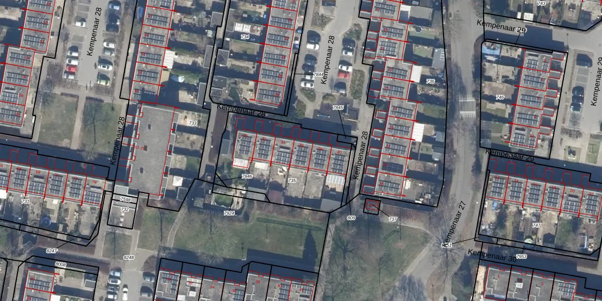 Het perceel waarop Kempenaar 28 36 staat heeft een oppervlakte van 1076 m². Dit is een zeer groot perceel. De perceeloppervlakte wordt geregistreerd door het Kadaster. Gedetailleerde informatie over de maten van dit perceel kunt u vinden in het rapport Kadastrale kaart met maatvoering van Kempenaar 28 36.
