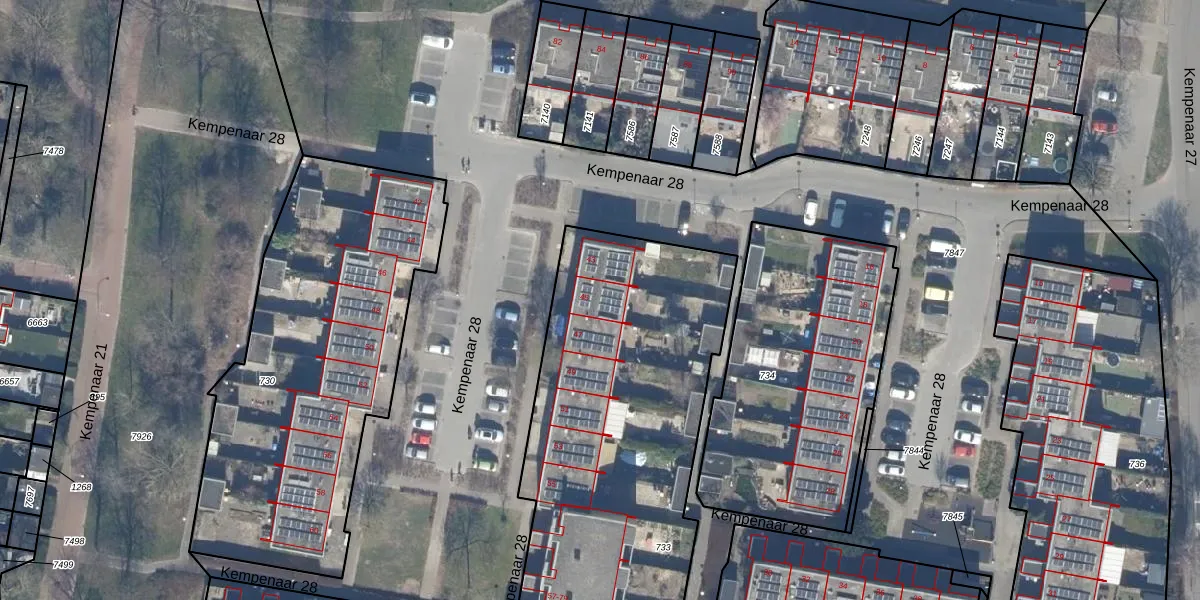 Het perceel waarop Kempenaar 28 45 staat heeft een oppervlakte van 2160 m². Dit is een zeer groot perceel. De perceeloppervlakte wordt geregistreerd door het Kadaster. Gedetailleerde informatie over de maten van dit perceel kunt u vinden in het rapport Kadastrale kaart met maatvoering van Kempenaar 28 45.