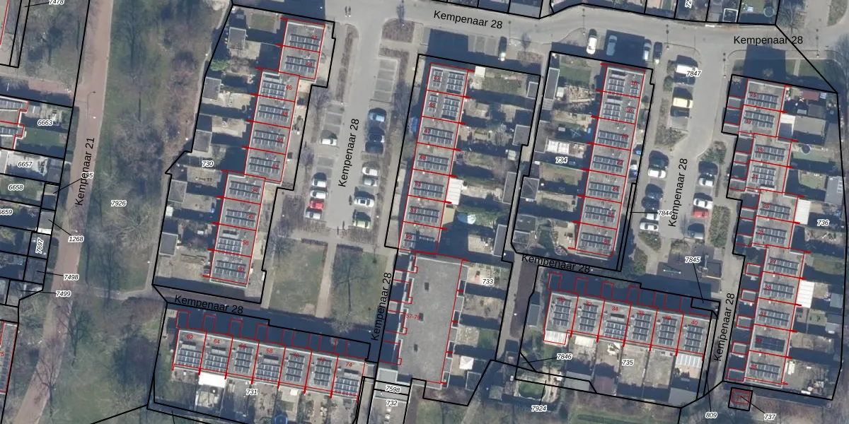 Het perceel waarop Kempenaar 28 53 staat heeft een oppervlakte van 2160 m². Dit is een zeer groot perceel. De perceeloppervlakte wordt geregistreerd door het Kadaster. Gedetailleerde informatie over de maten van dit perceel kunt u vinden in het rapport Kadastrale kaart met maatvoering van Kempenaar 28 53.