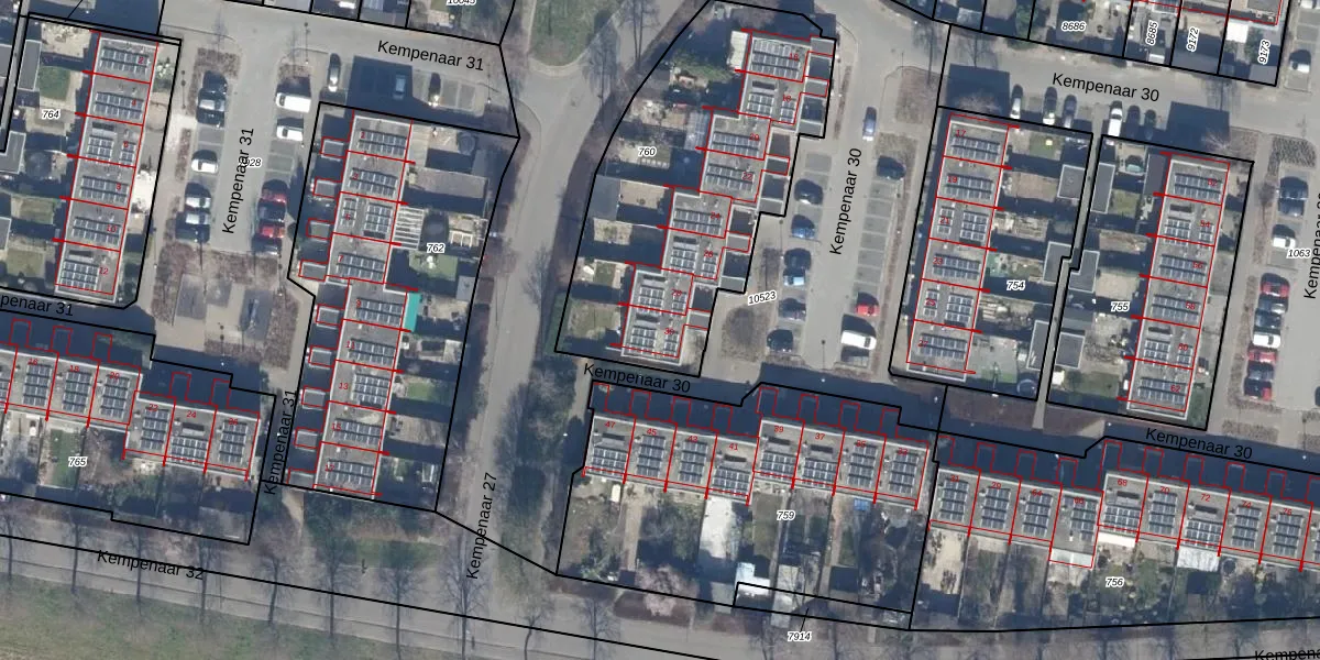 Het perceel waarop Kempenaar 30 30 staat heeft een oppervlakte van 1425 m². Dit is een zeer groot perceel. De perceeloppervlakte wordt geregistreerd door het Kadaster. Gedetailleerde informatie over de maten van dit perceel kunt u vinden in het rapport Kadastrale kaart met maatvoering van Kempenaar 30 30.