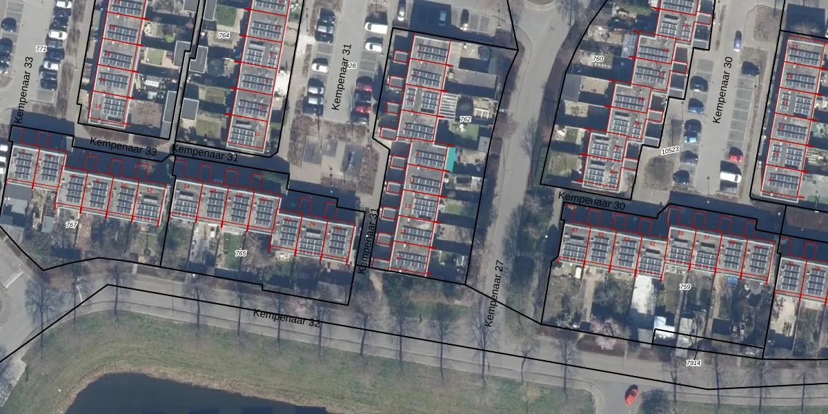 Het perceel waarop Kempenaar 31 13 staat heeft een oppervlakte van 1517 m². Dit is een zeer groot perceel. De perceeloppervlakte wordt geregistreerd door het Kadaster. Gedetailleerde informatie over de maten van dit perceel kunt u vinden in het rapport Kadastrale kaart met maatvoering van Kempenaar 31 13.