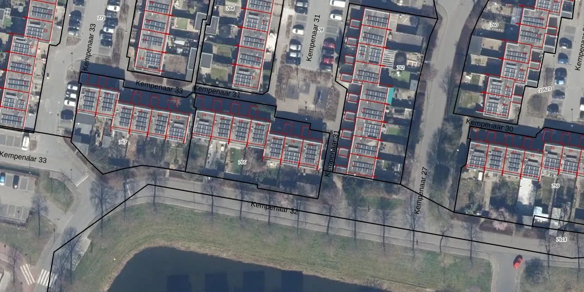 Het perceel waarop Kempenaar 31 24 staat heeft een oppervlakte van 1221 m². Dit is een zeer groot perceel. De perceeloppervlakte wordt geregistreerd door het Kadaster. Gedetailleerde informatie over de maten van dit perceel kunt u vinden in het rapport Kadastrale kaart met maatvoering van Kempenaar 31 24.