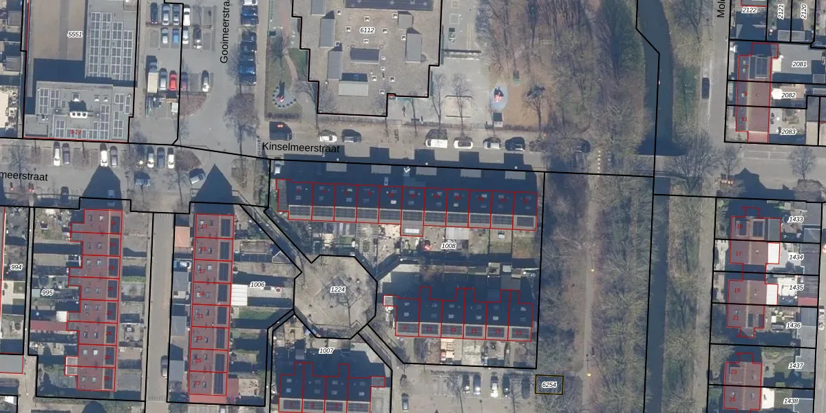Het perceel waarop Kinselmeerstraat 12 staat heeft een oppervlakte van 2455 m². Dit is een zeer groot perceel. De perceeloppervlakte wordt geregistreerd door het Kadaster. Gedetailleerde informatie over de maten van dit perceel kunt u vinden in het rapport Kadastrale kaart met maatvoering van Kinselmeerstraat 12.