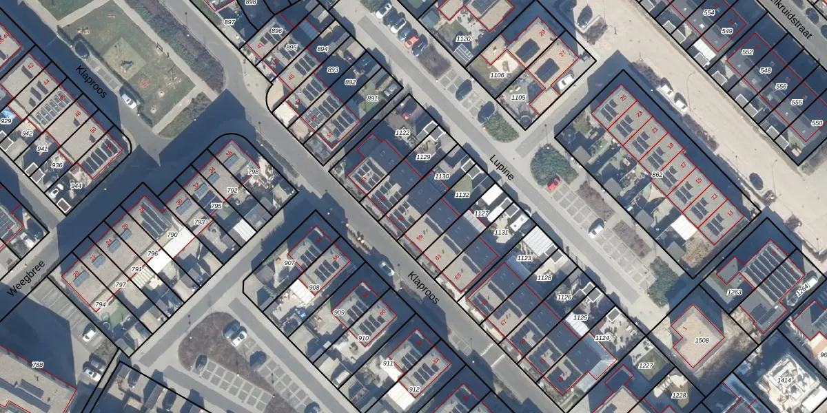 Het perceel waarop Klaproos 57 staat heeft een oppervlakte van 176 m². Dit is een middelgroot perceel. De perceeloppervlakte wordt geregistreerd door het Kadaster. Gedetailleerde informatie over de maten van dit perceel kunt u vinden in het rapport Kadastrale kaart met maatvoering van Klaproos 57.