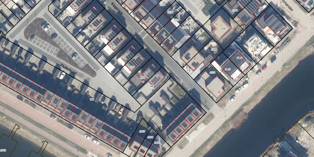 Gebruik de zoekbalk of klik op een perceel voor informatie over de adressen binnen dit perceel.