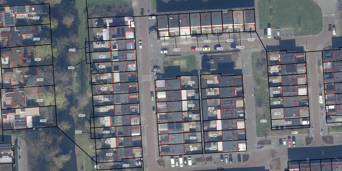 Het perceel waarop Klip 13 staat heeft een oppervlakte van 183 m². Dit is een middelgroot perceel. De perceeloppervlakte wordt geregistreerd door het Kadaster. Gedetailleerde informatie over de maten van dit perceel kunt u vinden in het rapport Kadastrale kaart met maatvoering van Klip 13.