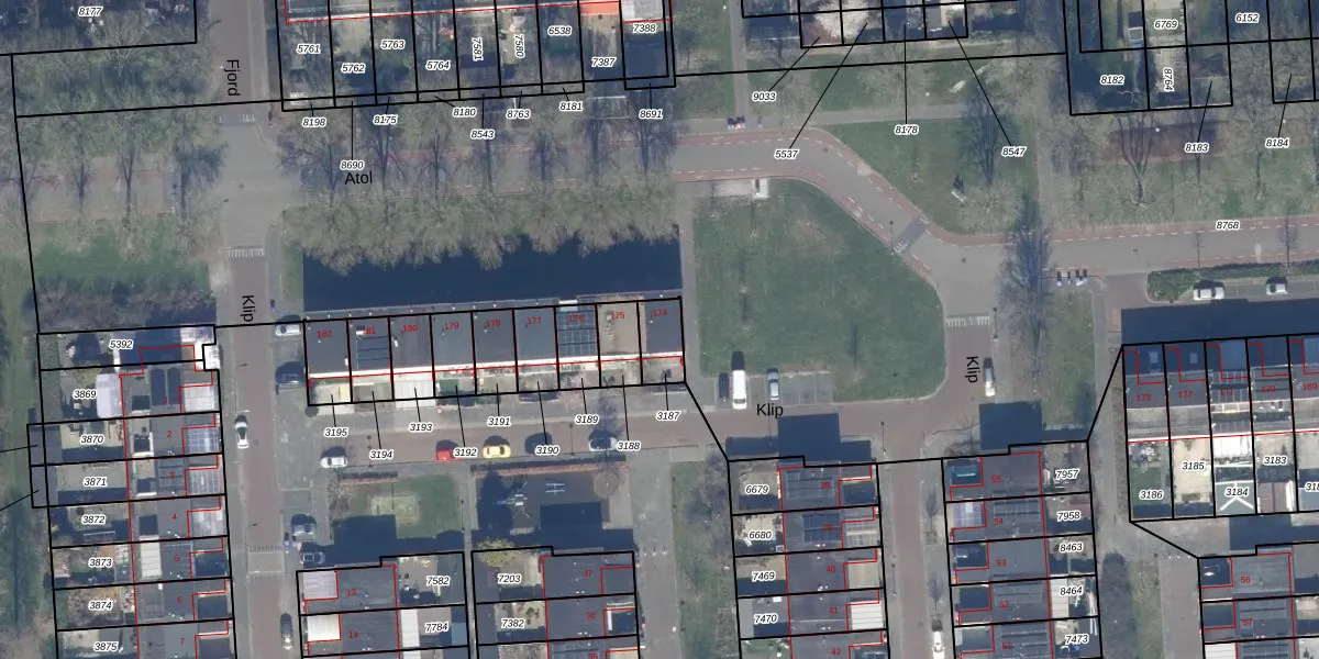 Gebruik de zoekbalk of klik op een perceel voor informatie over de adressen binnen dit perceel.