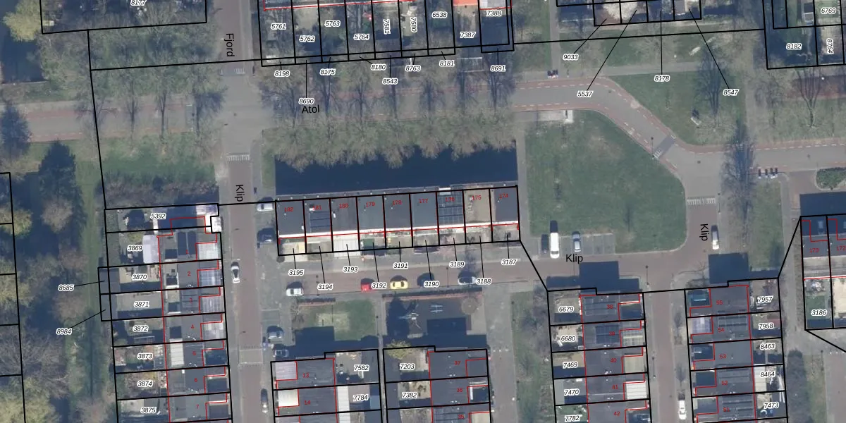 Het perceel waarop Klip 177 staat heeft een oppervlakte van 80 m². Dit is een klein perceel. De perceeloppervlakte wordt geregistreerd door het Kadaster. Gedetailleerde informatie over de maten van dit perceel kunt u vinden in het rapport Kadastrale kaart met maatvoering van Klip 177.