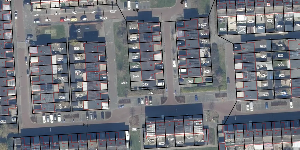 Gebruik de zoekbalk of klik op een perceel voor informatie over de adressen binnen dit perceel.