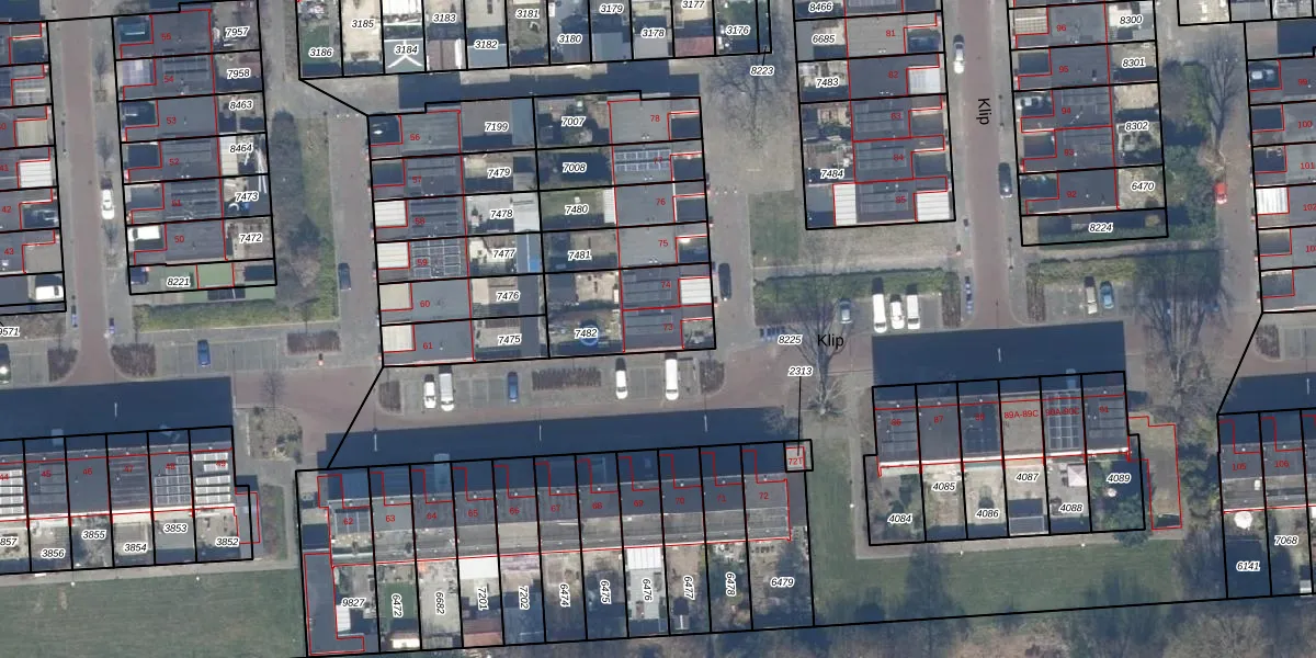 Het perceel waarop Klip 73 staat heeft een oppervlakte van 323 m². Dit is een groot perceel. De perceeloppervlakte wordt geregistreerd door het Kadaster. Gedetailleerde informatie over de maten van dit perceel kunt u vinden in het rapport Kadastrale kaart met maatvoering van Klip 73.