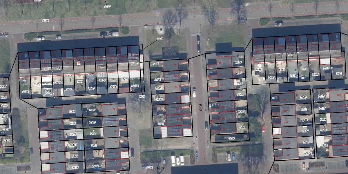 Gebruik de zoekbalk of klik op een perceel voor informatie over de adressen binnen dit perceel.