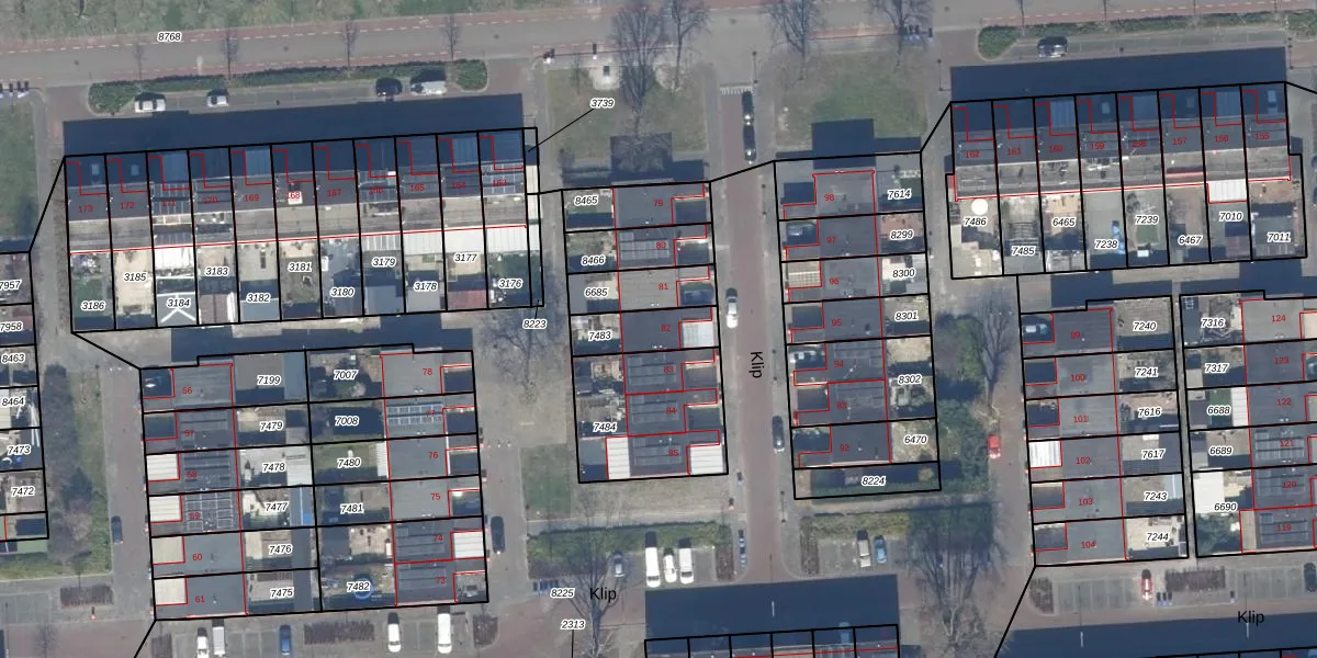 Gebruik de zoekbalk of klik op een perceel voor informatie over de adressen binnen dit perceel.