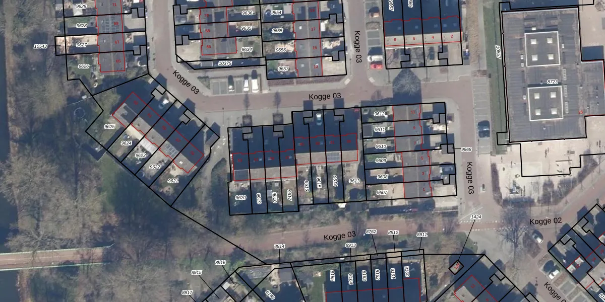 Kogge 03 45 is gelegen op kadastraal perceel LLS00M9616. Deze kadastrale aanduiding is uniek en wordt gebruikt door het Kadaster om eigendomsrechten en andere zakelijke rechten vast te leggen. Het perceel maakt onderdeel uit van de kadastrale gemeente Lelystad.