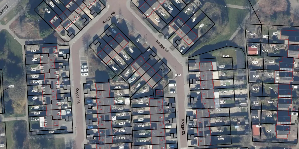 Kogge 05 6 is gelegen op kadastraal perceel LLS00M8309. Deze kadastrale aanduiding is uniek en wordt gebruikt door het Kadaster om eigendomsrechten en andere zakelijke rechten vast te leggen. Het perceel maakt onderdeel uit van de kadastrale gemeente Lelystad.