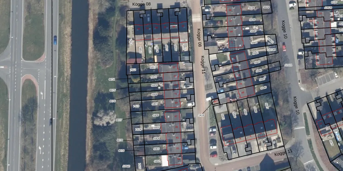 Gebruik de zoekbalk of klik op een perceel voor informatie over de adressen binnen dit perceel.