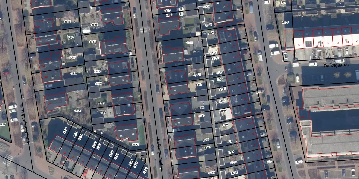 Gebruik de zoekbalk of klik op een perceel voor informatie over de adressen binnen dit perceel.