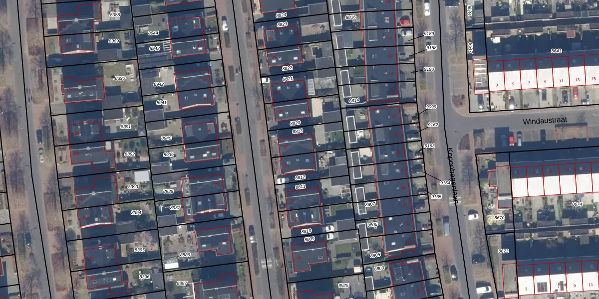 Gebruik de zoekbalk of klik op een perceel voor informatie over de adressen binnen dit perceel.