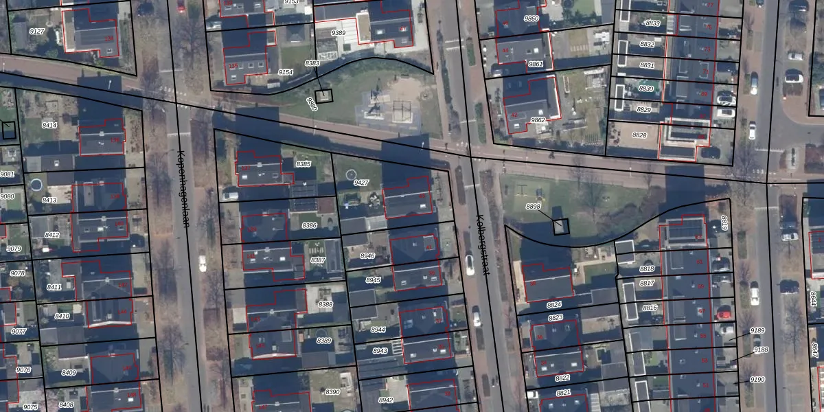 Het perceel waarop Kolbergstraat 43 staat heeft een oppervlakte van 445 m². Dit is een groot perceel. De perceeloppervlakte wordt geregistreerd door het Kadaster. Gedetailleerde informatie over de maten van dit perceel kunt u vinden in het rapport Kadastrale kaart met maatvoering van Kolbergstraat 43.