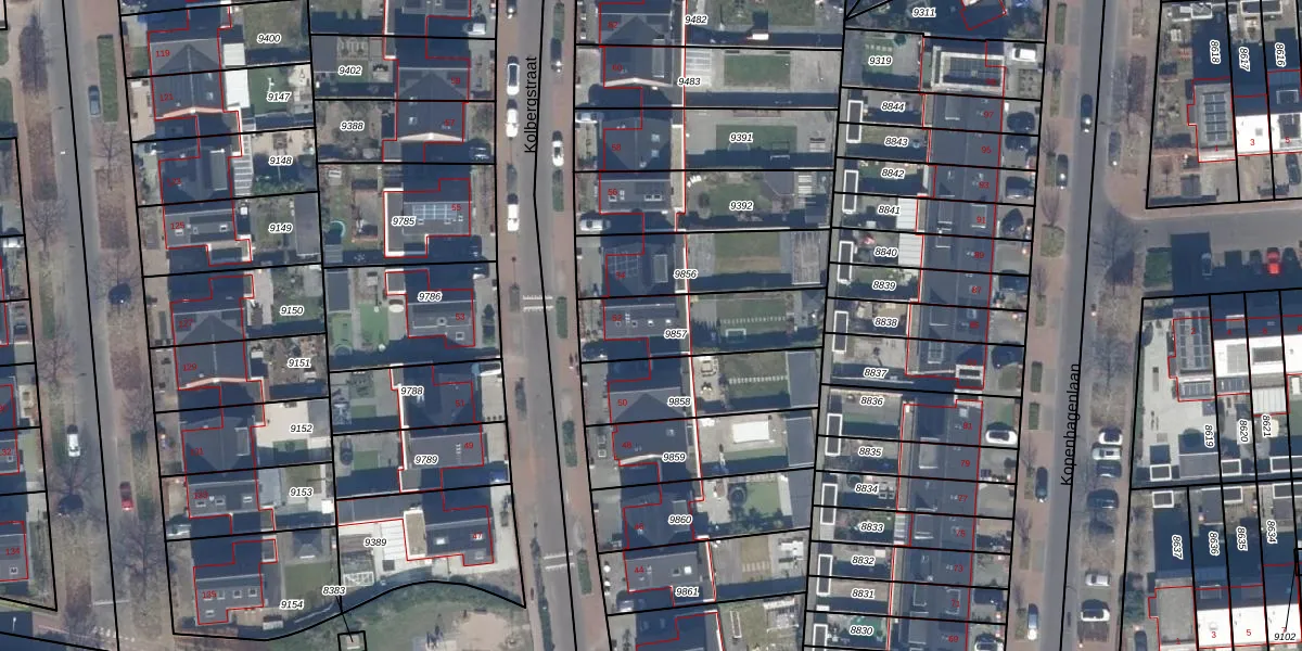 Het perceel waarop Kolbergstraat 52 staat heeft een oppervlakte van 357 m². Dit is een groot perceel. De perceeloppervlakte wordt geregistreerd door het Kadaster. Gedetailleerde informatie over de maten van dit perceel kunt u vinden in het rapport Kadastrale kaart met maatvoering van Kolbergstraat 52.