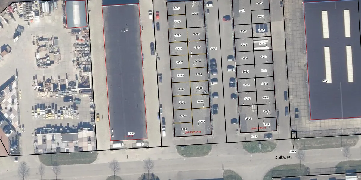 Kolkweg 20-33 is gelegen op kadastraal perceel LLS00N3231. Deze kadastrale aanduiding is uniek en wordt gebruikt door het Kadaster om eigendomsrechten en andere zakelijke rechten vast te leggen. Het perceel maakt onderdeel uit van de kadastrale gemeente Lelystad.