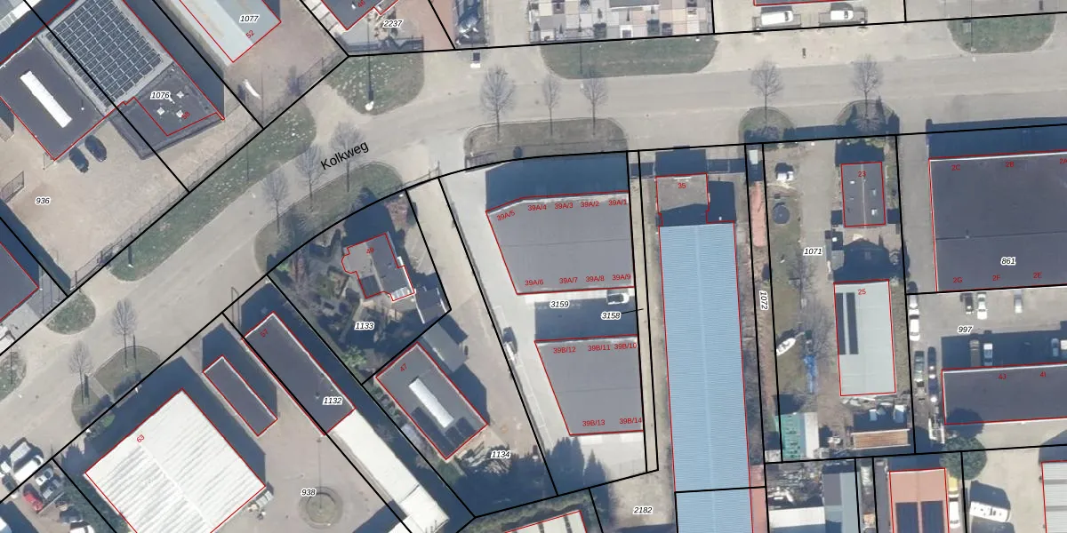 Het perceel waarop Kolkweg 39-A-6 staat heeft een oppervlakte van 1651 m². Dit is een zeer groot perceel. De perceeloppervlakte wordt geregistreerd door het Kadaster. Gedetailleerde informatie over de maten van dit perceel kunt u vinden in het rapport Kadastrale kaart met maatvoering van Kolkweg 39-A-6.