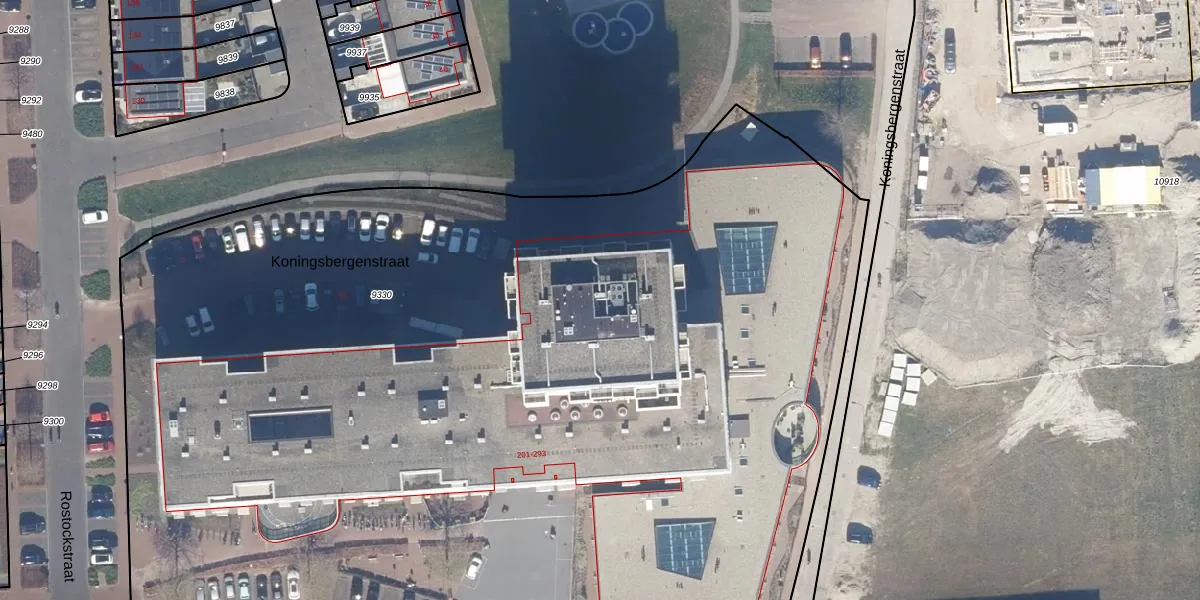 Het perceel waarop Koningsbergenstraat 237 staat heeft een oppervlakte van 8855 m². Dit is een zeer groot perceel. De perceeloppervlakte wordt geregistreerd door het Kadaster. Gedetailleerde informatie over de maten van dit perceel kunt u vinden in het rapport Kadastrale kaart met maatvoering van Koningsbergenstraat 237.