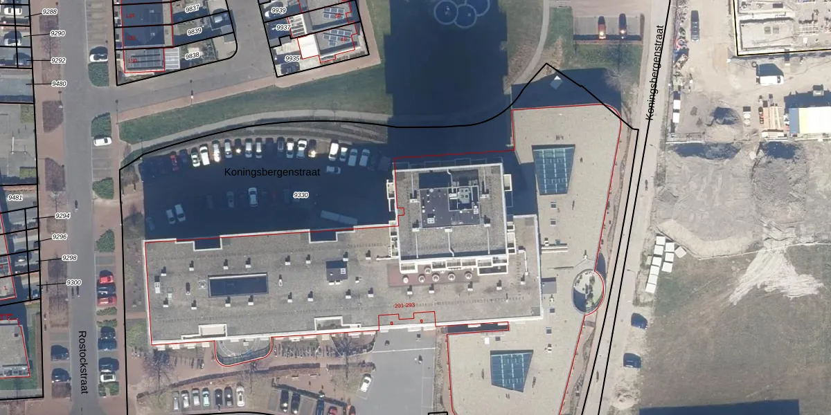 Het perceel waarop Koningsbergenstraat 283 staat heeft een oppervlakte van 8855 m². Dit is een zeer groot perceel. De perceeloppervlakte wordt geregistreerd door het Kadaster. Gedetailleerde informatie over de maten van dit perceel kunt u vinden in het rapport Kadastrale kaart met maatvoering van Koningsbergenstraat 283.