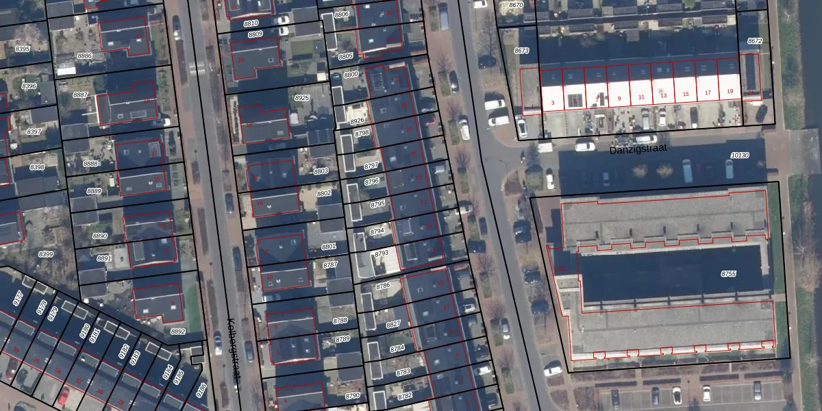 Gebruik de zoekbalk of klik op een perceel voor informatie over de adressen binnen dit perceel.