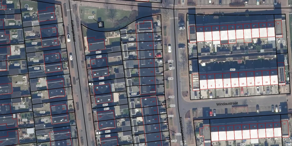 Gebruik de zoekbalk of klik op een perceel voor informatie over de adressen binnen dit perceel.