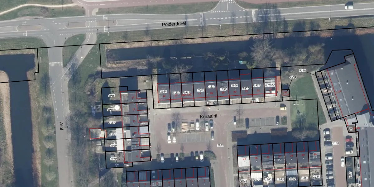 Koraalrif 16-A is gelegen op kadastraal perceel LLS00K1962. Deze kadastrale aanduiding is uniek en wordt gebruikt door het Kadaster om eigendomsrechten en andere zakelijke rechten vast te leggen. Het perceel maakt onderdeel uit van de kadastrale gemeente Lelystad.