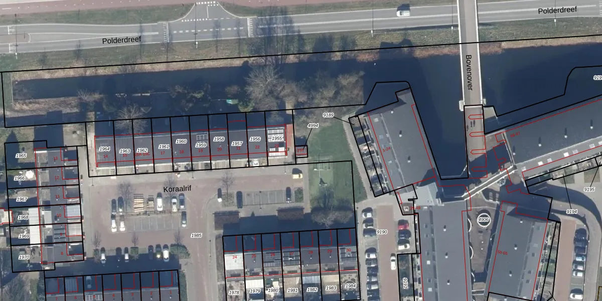 Het perceel waarop Koraalrif 23-T staat heeft een oppervlakte van 16 m². Dit is een klein perceel. De perceeloppervlakte wordt geregistreerd door het Kadaster. Gedetailleerde informatie over de maten van dit perceel kunt u vinden in het rapport Kadastrale kaart met maatvoering van Koraalrif 23-T.