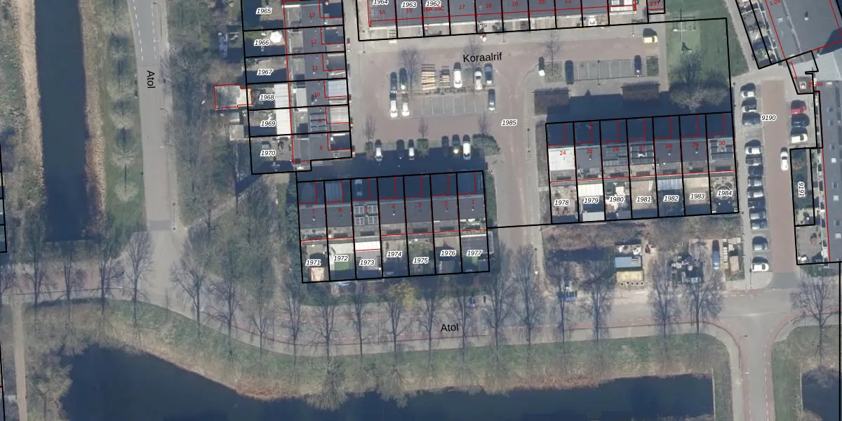 Gebruik de zoekbalk of klik op een perceel voor informatie over de adressen binnen dit perceel.