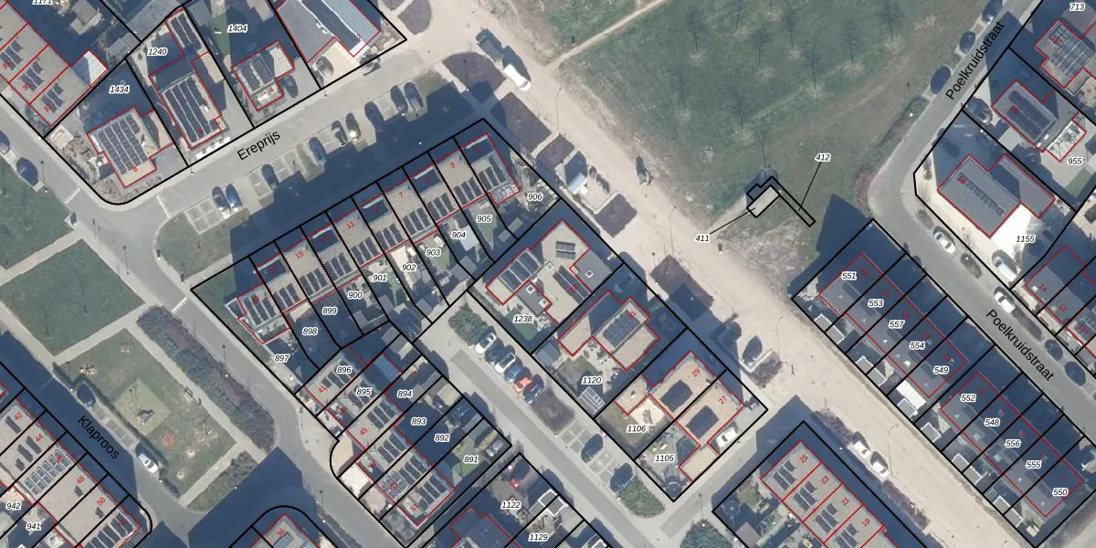 Het adres is gelegen op perceel 1238 in de sectie A en de kadastrale gemeente Lelystad. De kadastrale aanduiding is aldus LLS00-A-1238. Het perceel is kleiner dan gemiddeld in Lelystad. Het perceel is 398 m² groot, terwijl het gemiddelde ligt op 2,1 ha. De grootste perceeloppervlakte in de kadastrale gemeente is 78,50 km². De kleinste oppervlakte bedraagt 0 m². Dit is het enige adres dat aanwezig is op het perceel. De huidige grenzen van het perceel zijn digitaal in de Basisregistratie Kadaster (BRK) geregistreerd op 28-02-2023.