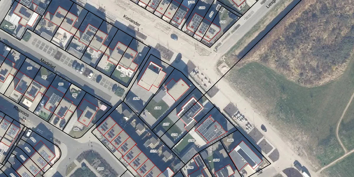 Koriander 47 is gelegen op kadastraal perceel LLS00A1394. Deze kadastrale aanduiding is uniek en wordt gebruikt door het Kadaster om eigendomsrechten en andere zakelijke rechten vast te leggen. Het perceel maakt onderdeel uit van de kadastrale gemeente Lelystad.