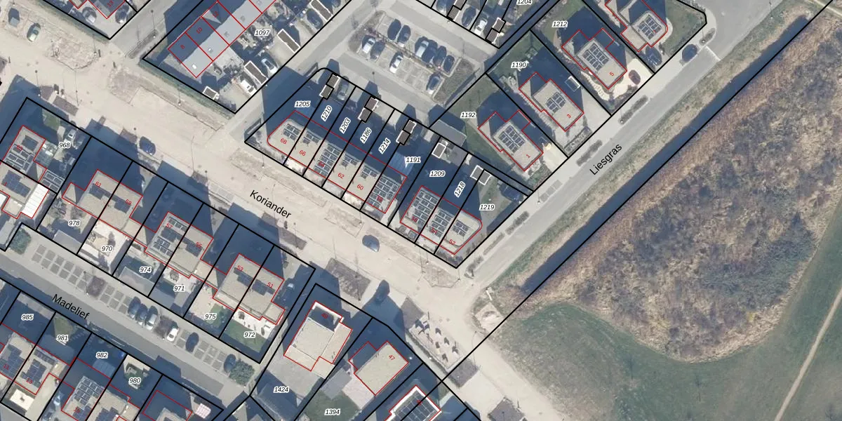 Het perceel waarop Koriander 56 staat heeft een oppervlakte van 190 m². Dit is een middelgroot perceel. De perceeloppervlakte wordt geregistreerd door het Kadaster. Gedetailleerde informatie over de maten van dit perceel kunt u vinden in het rapport Kadastrale kaart met maatvoering van Koriander 56.