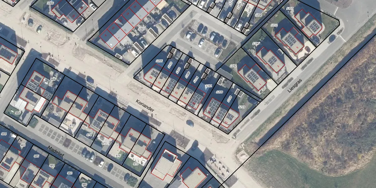 Het perceel waarop Koriander 60 staat heeft een oppervlakte van 133 m². Dit is een middelgroot perceel. De perceeloppervlakte wordt geregistreerd door het Kadaster. Gedetailleerde informatie over de maten van dit perceel kunt u vinden in het rapport Kadastrale kaart met maatvoering van Koriander 60.