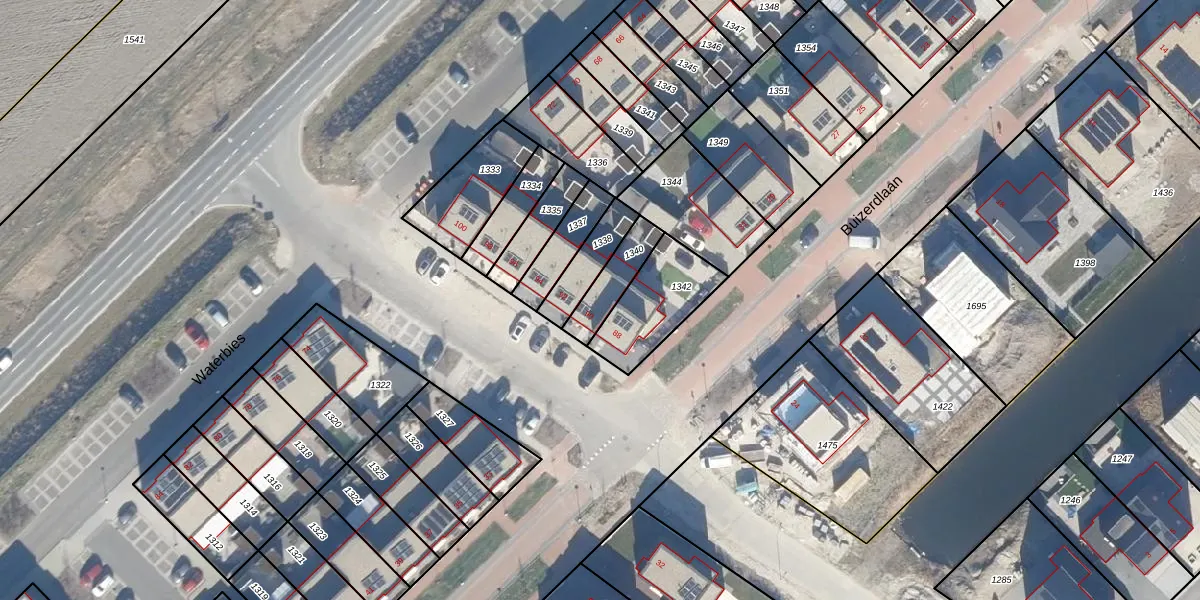 Gebruik de zoekbalk of klik op een perceel voor informatie over de adressen binnen dit perceel.